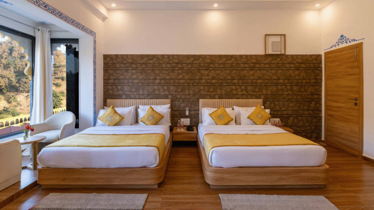 The Tala Room invites you to unwind beneath twin queen-sized beds, perfect for sharing restful nights with friends or family. Open your balcony doors to a sky full of stars, and let every evening end in quiet wonder.